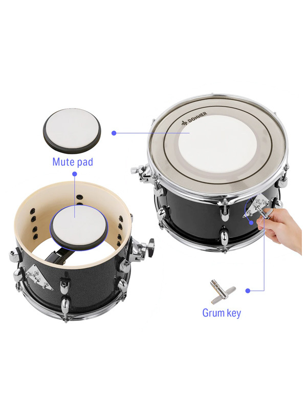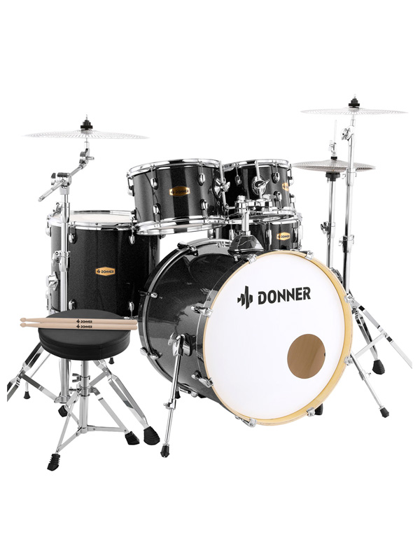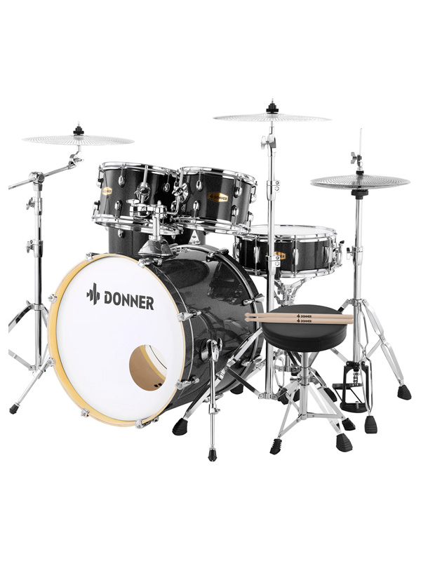 درامز آکوستیک دانر مدل Donner DDS-520 5-Piece Drum Set with Built-in Silencer System